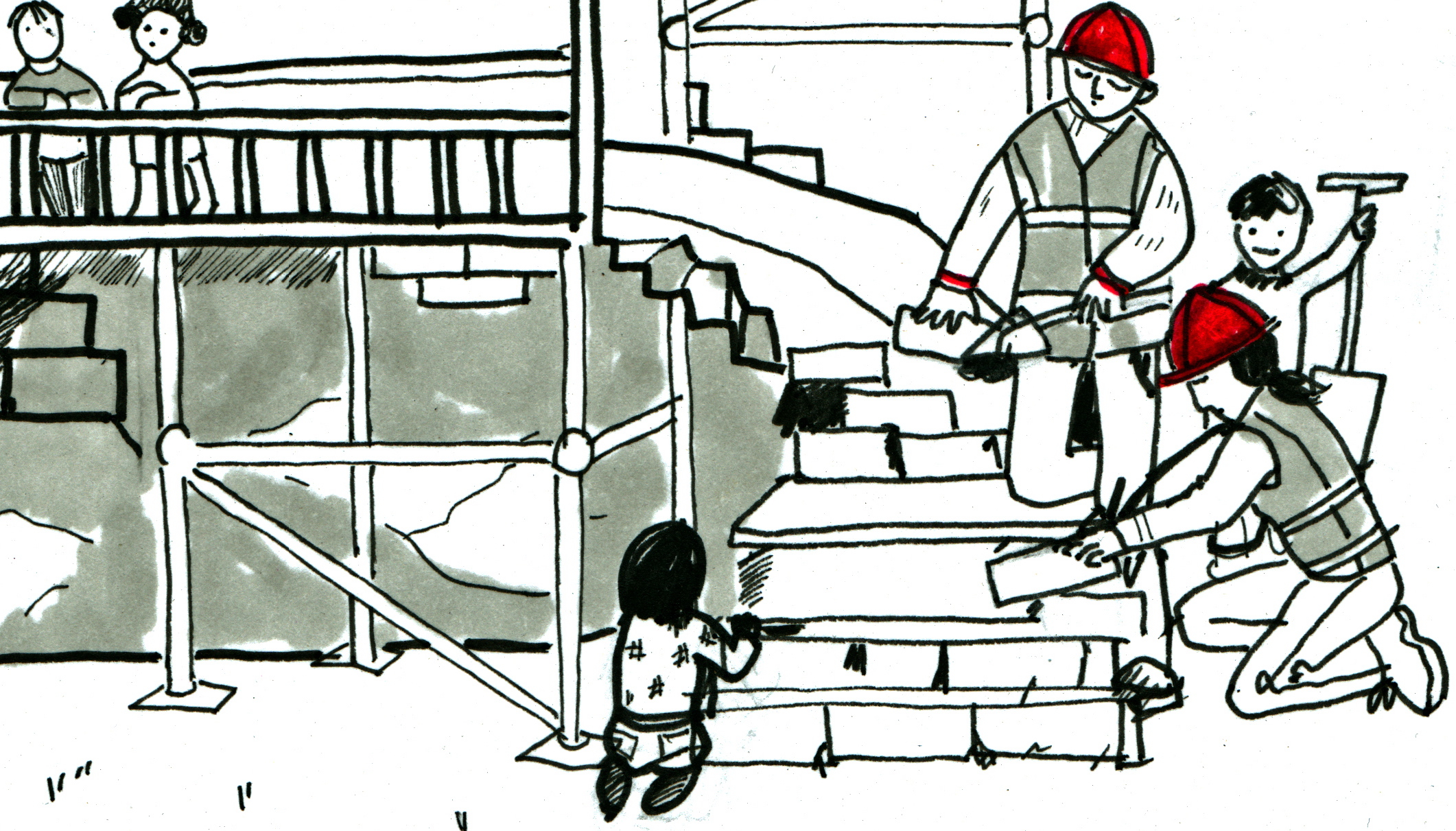 He has a wife who works as a child-minder and two kids and he’s been re-building, re-creating their own house, slowly, when he can, for years, and doing an amazing job. He’s a worker, a really hard grafter, we love him for it, for his enthusiasm for building, for creating beautiful spaces in wood and brick and plaster. As far as I’m concerned, this means he is a maker too, just like everyone in that theatre, just like any artist in that theatre – and he doesn’t know that theatre is for him, that it might have something for him.